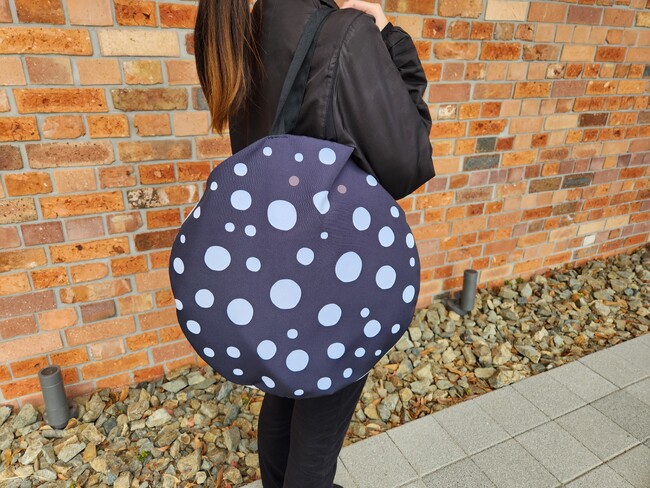 バッグは、以前より販売しているポルカドットスティングレイの座布団がすっぽりと入る大きさで大容量。