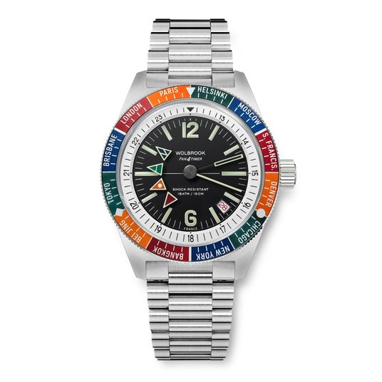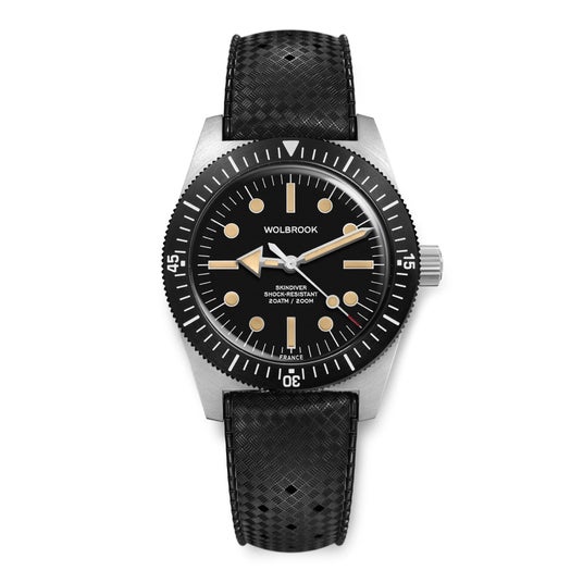 1949年にアメリカで誕生した腕時計ブランド。第二次世界大戦後の実用主義が色濃く残る時代背景の中で、軍用やプロフェッショナル用途に応える“ツールウォッチ”を中心に展開してきました。過酷な環境下での使用を想定し、高い視認性と堅牢性、そして無駄を削ぎ落とした機能美を追求。装飾性よりも実用性を重視した設計思想は、当時の多くのワークウォッチやミリタリーウォッチと共鳴しながら、ブランドの核として確立されていきます。その確かな性能と信頼性から、一部モデルは宇宙飛行士にも愛用されていた記録が残されており、プロフェッショナルの現場においても評価されてきました。しかし1970年代、クォーツショックの影響によりブランドは一度その歴史に幕を下ろします。そして2019年、約半世紀の時を経てWolbrookは復活。創業当時の精神とデザインコードを継承しながら、現代の技術と品質基準を取り入れたコレクションとして再始動を果たしました。現在はフランス・ブザンソンにて組立を行い、日本製ムーブメントを採用。伝統と合理性を融合させたものづくりにより、現代における“実用時計”の新たな価値を提示しています。