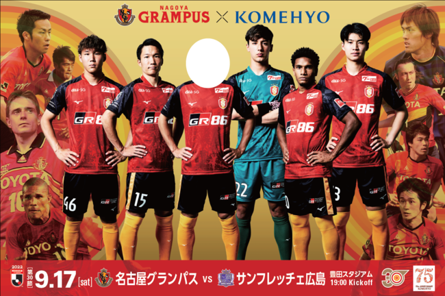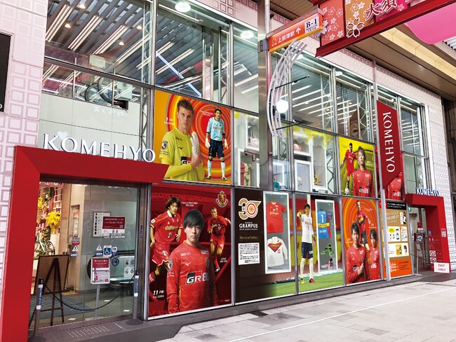 キャンペーンでは、2022年9月17日(土)と10月1日(土)の2日間、豊田スタジアムで行われる名古屋グランパスの30周年記念試合を盛り上げる応援グッズをプレゼントする他、2022年9月26日(月)~10月31日(月)で、KOMEHYO名古屋本店本館に名古屋グランパスの歴代レジェンドと現役選手がプリントされたオリジナル装飾が登場します。さらに大須商店街にある名古屋グランパスのオフィシャルショップ「クラブグランパス」と連携し、先着で限定グッズがもらえる企画も実施いたします。
