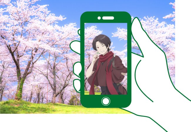 ボトルデザインには、7月8日(金)に第二幕が公開される「特『刀剣乱舞-花丸-』~雪月華~」から加州清光、大和守安定、山姥切国広、山姥切長義、豊前江、山鳥毛の6振が登場。携帯電話やタブレットのカメラでボトルを読み込むと、本キャンペーンの描きおろし特別デザインの刀剣男士たちが、ARで浮かび上がります。浮かび上がるビジュアルは、ボトル6個に各2種類。桜舞い散る中からボトルに描かれた刀剣男士が単体で出現したり、ボトルに描かれた刀剣男士を中心に6振が集合したビジュアルがランダムに出現します。そのままカメラを左右に振れば、好きな背景と一緒に刀剣男士の写真を撮ったり、インカメラにして刀剣男士と自撮りをすることも可能です。