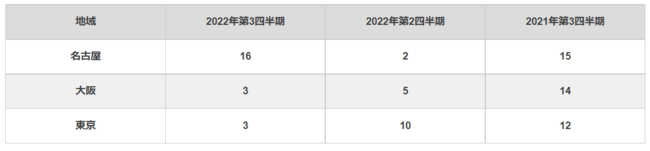 地域別では、調査対象の3地域(名古屋・大阪・東京)全てで増員予定、前四半期比・前年同期比もプラスの結果となりました。