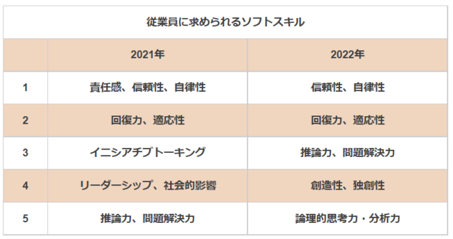 【グローバルの調査結果】従業員に求められるソフトスキル:前回同様「信頼性・自律性」が1位の結果