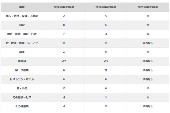 2022年第3四半期(7-9月期)雇用予測調査結果発表