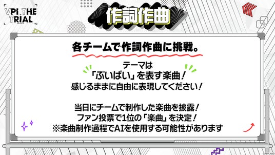 各チームで「ぶいぱい」を表現する楽曲の制作に挑戦し、当日のステージで披露。