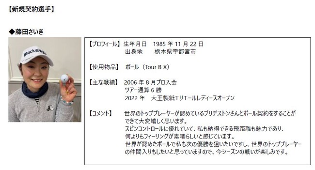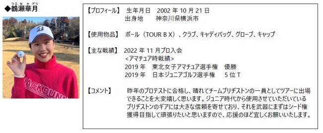 ブリヂストンスポーツ株式会社の契約選手が2023年の国内女子ツアーに参戦します。