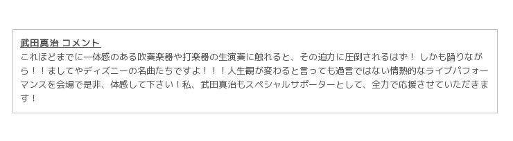 7月より全国ツアーを行う『ブラスト!:ミュージック・オブ・ディズニー』のスペシャルサポーターに俳優・サックスプレイヤーの武田真治、タレントの小島瑠璃子が決定しました。