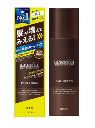 「マッシーニ」は、スプレーするだけで、髪1本1本にミクロの微粉末が付着することでボリュームアップし、髪が増えて見えるヘアカバースプレーです。1997年の発売以来、ブランド累計出荷450万本※3を超えるロングセラーシリーズとして、多くの方にご愛用いただいています。