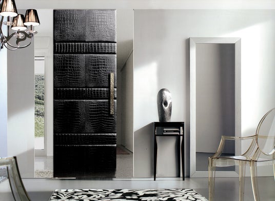 ドアは高級感を意識して天然クロコダイル革のドア「インペリアル(900万円)」と、金沢の金箔・金沢箔を全面に使用した金箔レザードア「ジパング(420万円)」等、4種類を出展しました。