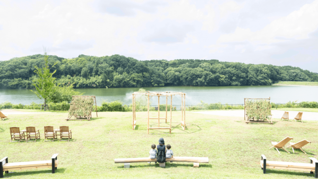 ムーミンバレーパークに隣接するメッツァビレッジでは、宮沢湖を望む芝生の広場「ノルディックスクエア」にて、ヒノキの香りとひんやり体験が楽しめます。