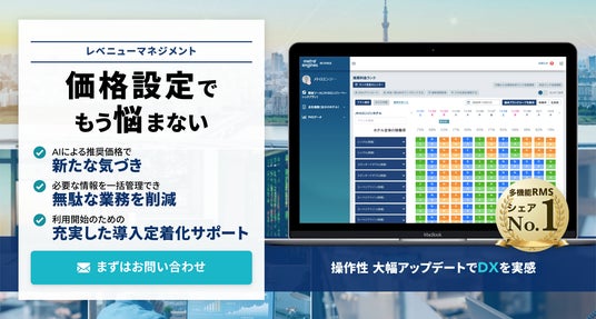 株式会社ミドルウッド様の事例では、本システムを導入した結果、レートコントロールの手作業が不要となり、運営効率の向上と売上初動の5~10%向上を実現しました。