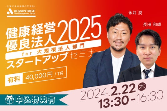 株式会社アドバンテッジリスクマネジメントは、健康経営を推進するご担当者を対象としたWebセミナー「健康経営優良法人2025スタートアップセミナー」を開催いたします。