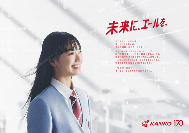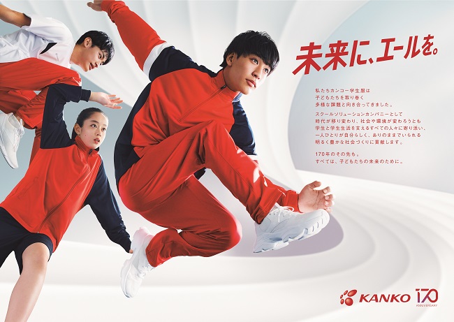 その第一弾の取り組みとして、ブランドスローガンである「未来に、エールを。」をテーマに菅公学生服株式会社(本社:岡山県岡山市、代表取締役社長:尾崎 茂、以下カンコー学生服)の創業170周年を記念したブランドクリエイトを企画・制作いたしました。