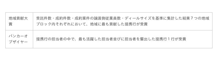 北陸銀行(頭取 庵 栄伸)は、M&Aに関する業務提携先である株式会社日本M&Aセンター(本社:東京、代表取締役社長 三宅 卓)より、「地域貢献大賞」、「バンカーオブザイヤー」を受賞しましたのでお知らせいたします。