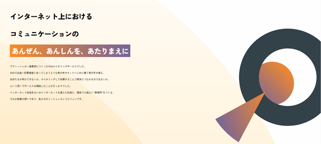 アディッシュは、インターネット社会を健全で心地よい”居場所”となるような社会の実現を目指しています。