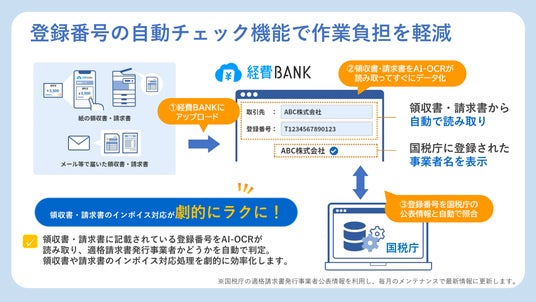 ■ 経費BANKなら領収書・請求書記載の登録番号を自動でチェック!インボイスに標準対応