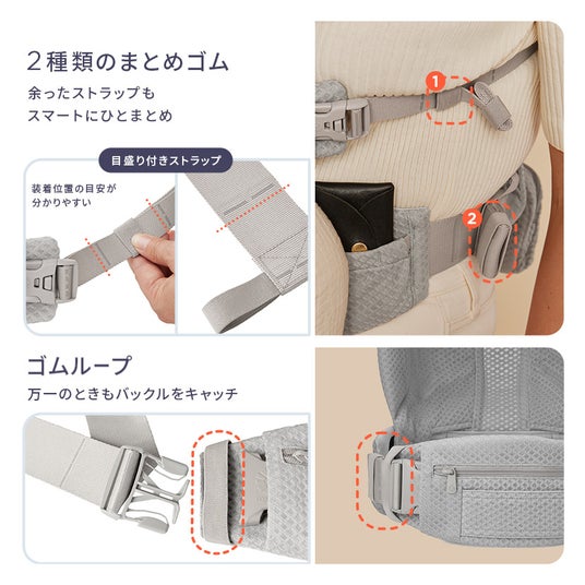 長年愛されるOMNIシリーズの特長である快適性をアップデート。抱っこひものある暮らしそのものもスマートに変える機能美が魅力です。また、メッシュを全面に使用し、表面のボタンやバックルを隠れる仕様にするなど、洗練された見た目になりました。