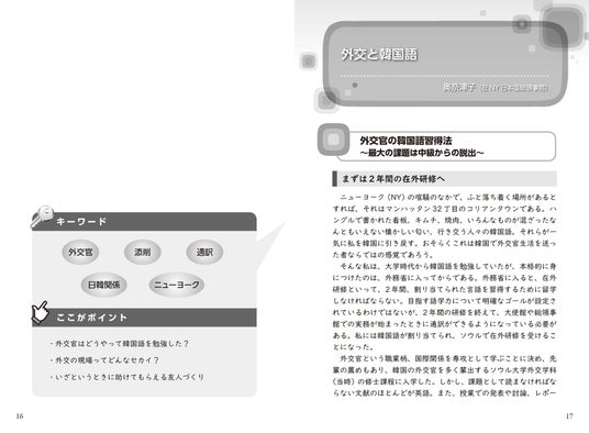 12人それぞれの「好きな韓国語」や「学習方法」も楽しめます。これから韓国語を使ってはたらきたい人には、きっと道先を照らしてくれることばが見つかるはず。