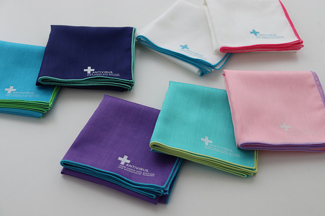 ハンカチ、マスク、PVCなどアイテムの特性に合わせた抗ウイルス加工を使い分け、付着したウイルス・細菌の数を減少、布製品も優れた耐洗濯性で、洗濯後も効果が持続します。