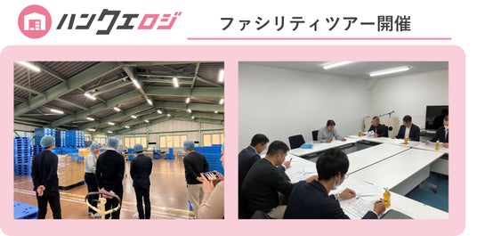 『ハンクエロジ』は、『ハンソクエスト』メンバー企業で構成された、販促業界のセットアッセンブリ業務を支える集団です。メンバー企業間で共通課題を解決するシステムを運用し、定期的な情報共有を通じて業務の活性化、生産性向上、効率化を目指しています。今回、ハンクエロジメンバー企業の要望に応え、2回目となる工場見学“ファシリティツアー”を開催しました。本ツアーを通じて、作業環境や管理手法、現場の工夫を共有し、参加企業間の学びと成長を促進する場を提供しました。