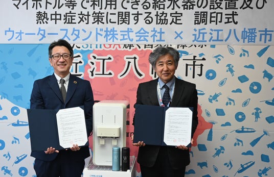浄水型ウォーターサーバーのレンタル事業を行うウォータースタンド株式会社(本社:埼玉県さいたま市、代表取締役社長:本多 均、以下当社)は、2025年4月24日(木)に滋賀県近江八幡市(市長:小西 理)と「マイボトル等で利用できる給水器の設置及び熱中症対策に関する協定」を締結したことをお知らせいたします。