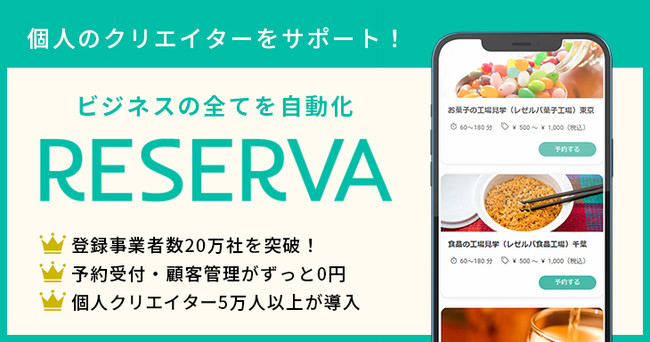 RESERVA(https://reserva.be/)は、ヘアサロン、ネイルサロン、フィットネスジム、オンラインレッスン、各種イベント・セミナーなど20万社以上で導入。個人のクリエイターもサポート!