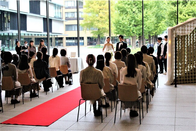 大正大学(学長:高橋秀裕、所在地:東京都豊島区)の表現文化学科アート&エンターテインメントワークコースの学生29名が、11月1日(火)にキャンパス施設(8号館1階と2階)を利用し、当日入籍した本学卒業生(表現文化学科2019年3月卒)の新郎新婦の挙式を執り行うウェディングイベントを開催しました。