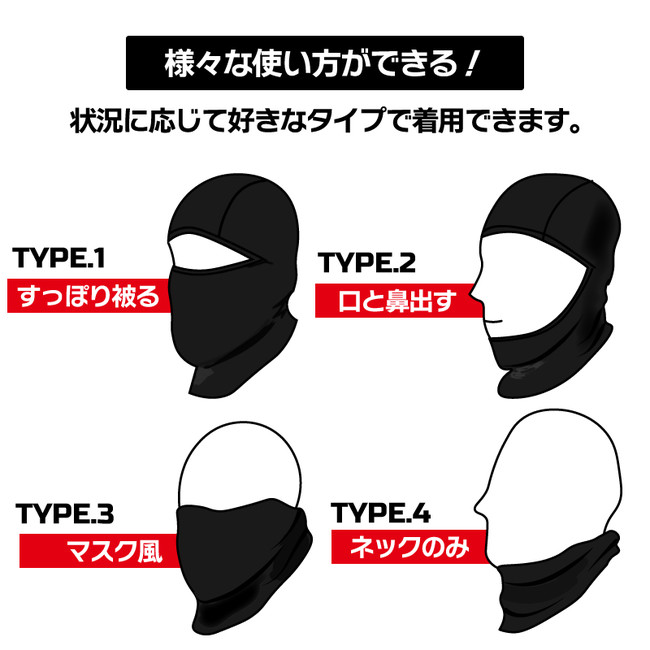 スポーツシーンや屋外作業に最適な春夏用バラクラバです。