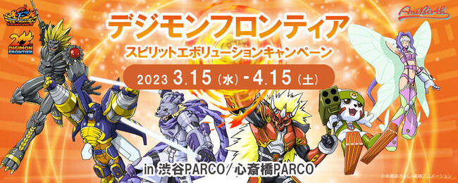 また、AniBirth渋谷PARCO店、AniBirth心斎橋PARCO店ではノベルティ(認定証)が貰える「デジモンフロンティア スピリットエボリューションキャンペーン」も開催。