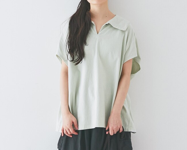 広幅の袖口と肌離れのよいゆったりとしたシルエットで、風通し良くご着用頂けます。