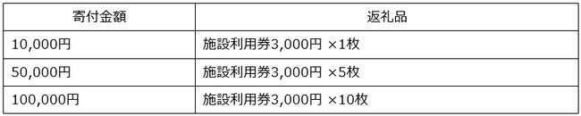 返 礼 品 例 :ゴルフプレー利用券、ホテル宿泊割引券、アクティビティ利用券、