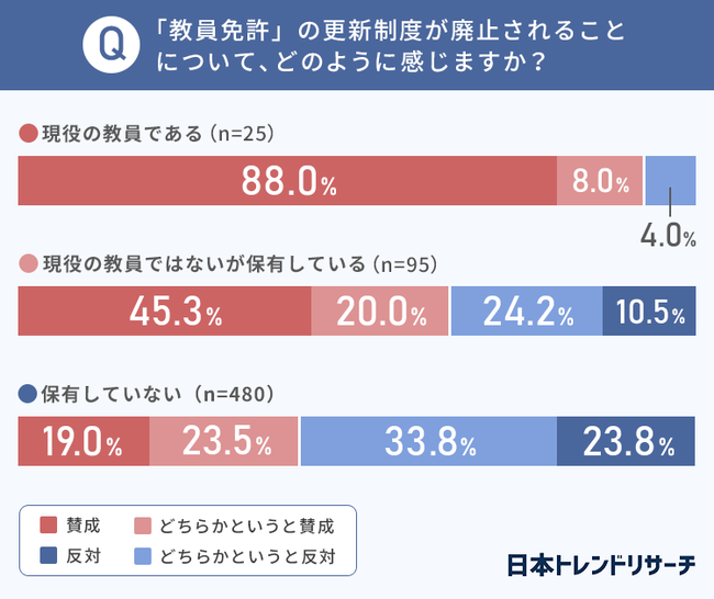 ■教員免許更新制度の廃止、「現役教員」の96.0%が「賛成」
