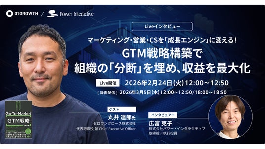 株式会社パワー・インタラクティブは、無料ウェビナー『マーケティング・営業・CSを「成長エンジン」に変える!GTM戦略構築で、組織の「分断」を埋め、収益を最大化』を、2月24日にライブ開催、3月5日に録画配信を行います。