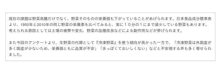 5■高騰、そして栄養価低下の野菜。働く主婦層を悩ませる野菜問題に