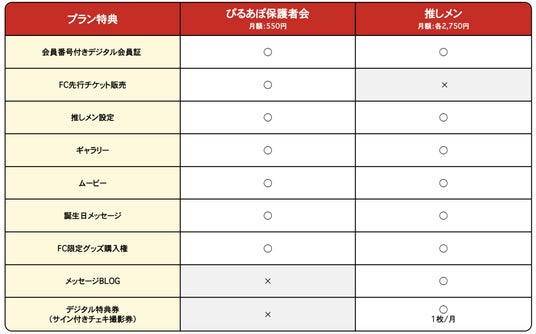 オフィシャルファンクラブ「ぴるあぽ保護者会」では、ライブイベントのチケット先行販売や、限定公開の個別メッセージ、推しメン設定、ギャラリー、ムービーなど盛りだくさんの内容でコンテンツを展開予定です。