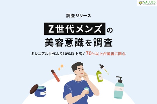 インターネット行動ログ分析によるマーケティング調査・コンサルティングサービスを提供する株式会社ヴァリューズ(本社:東京都港区、代表取締役社長:辻本 秀幸、以下「ヴァリューズ」)は、国内の15歳~43歳の男性4,510人を対象に、Z世代およびミレニアル世代男性の美容意識に関するアンケート調査を実施し、またヴァリューズが独自保有する国内最大規模約250万人の消費者行動ログデータを活用して、消費者のオンライン上での情報収集や購買行動について調査しました。