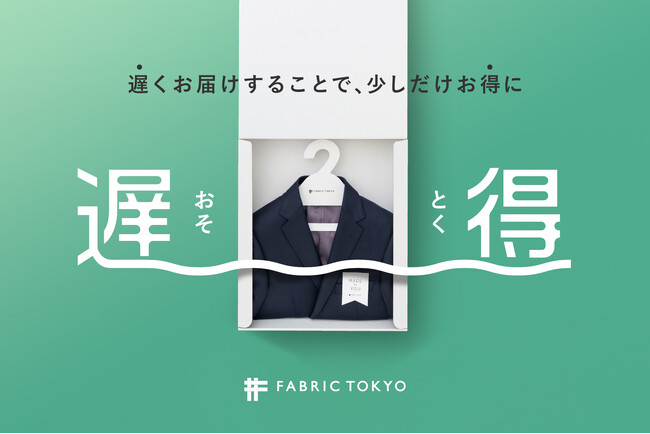 CUSTOM WEAR for ALLをビジョンに、カスタムオーダーのビジネスウェアブランドを提供しているFABRIC TOKYOは、通常30日前後でお届けしているオーダースーツで、60日前後のお届けを選択し割引を受けられるサービス、「遅得(おそとく)」をリリースしたことをお知らせいたします。