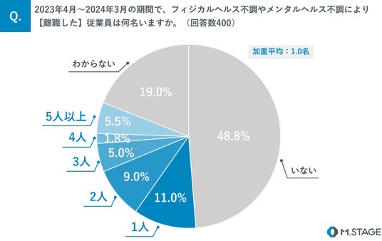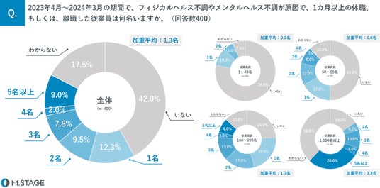 具体的に、1カ月以上の休職、もしくは、離職した従業員数が「1名以上」いると回答した担当者は40.6%となり、「わからない」と回答した担当者は17.5%となりました。