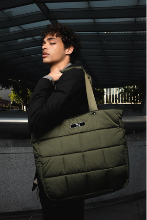 素材にはイタリア アクアフィル社が開発したエコニール(R)︎を使用し、リップストップ状に織られた光沢のある生地は、高級感があり耐久性にも優れたナイロン素材となっています。