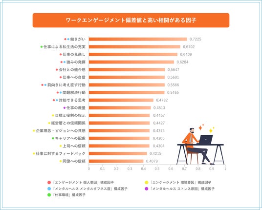【ワークエンゲージメント偏差値と比較的高めの相関がある因子】