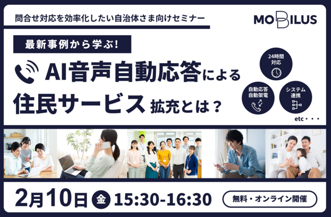 The SupportTech Companyとして顧客サポート支援のソリューションを開発・提供するモビルス株式会社(本社:東京都港区、代表取締役社長:石井智宏)は、2023年2月10日(金)に自治体さま向けセミナー「最新事例から学ぶ!AI音声自動応答による住民サービス拡充とは?」を開催します。