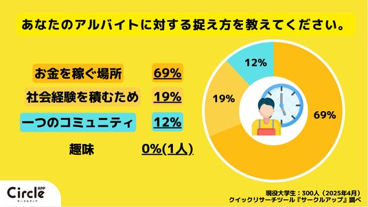 ■現役大学生の約70%はアルバイトを「お金を稼ぐ場所」として捉えている。