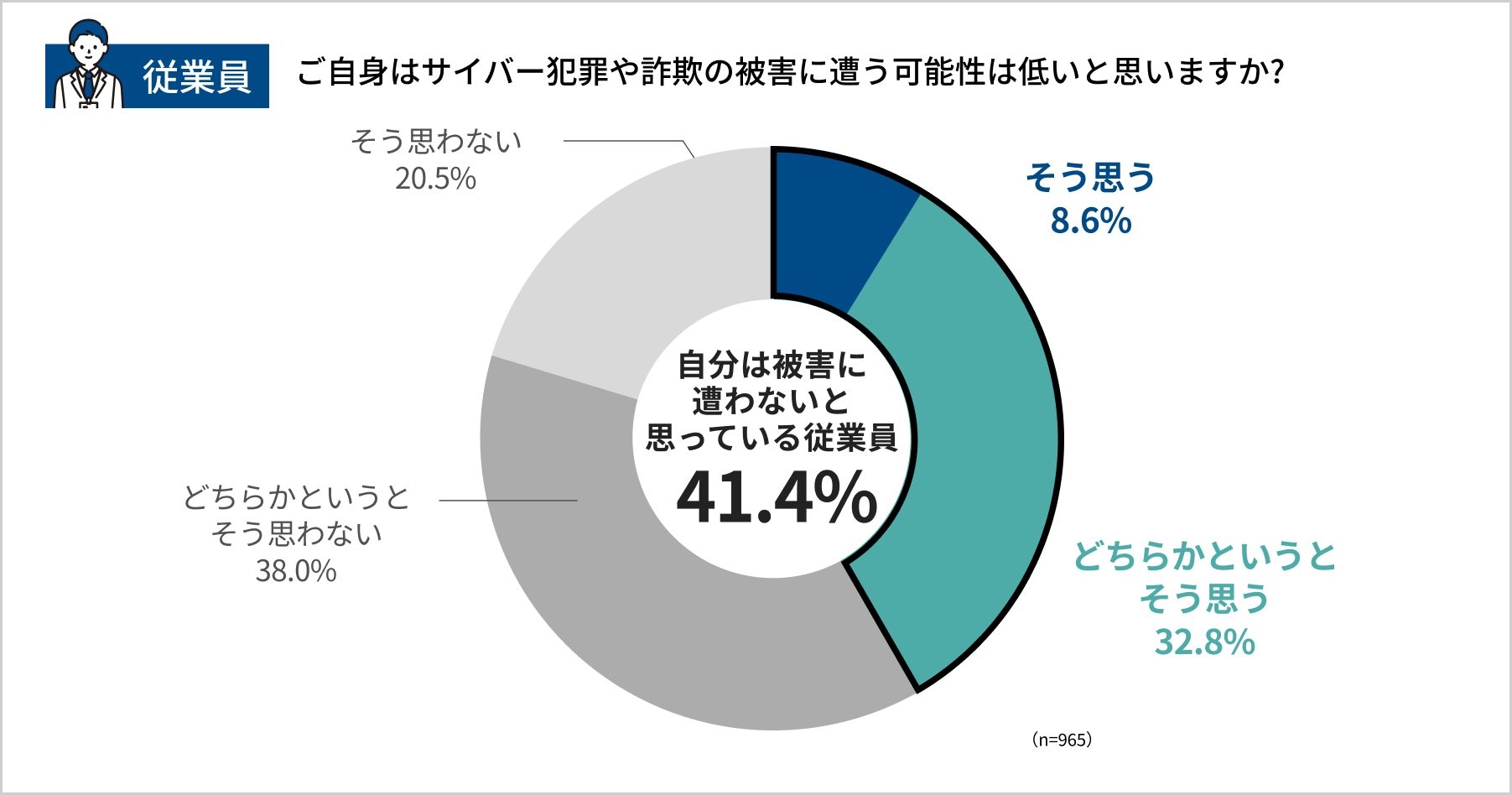 さらに、「自分はサイバー犯罪や詐欺の被害に遭う可能性は低いと思いますか」と尋ねたところ、41.4%が「そう思う/どちらかというとそう思う」と回答しました。