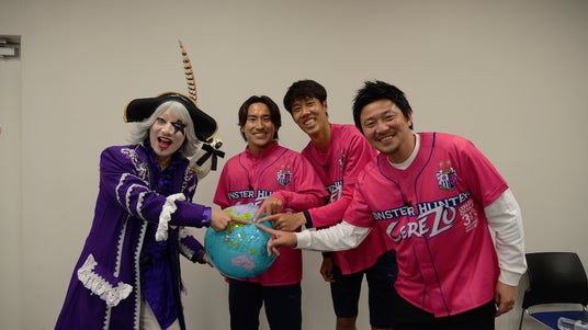 画像左より、ゴー☆ジャスさん、セレッソ大阪 登里享平選手、田中駿汰選手、酒本憲幸アンバサダー