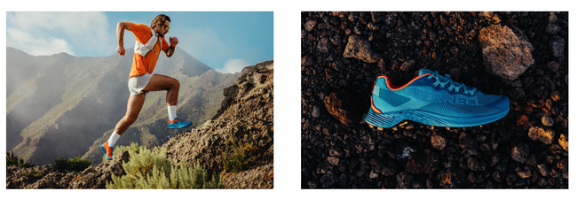 厚底モデルがスタンダードとなった現在のトレイルランニングシューズ市場において、軽量でニュートラルな走り心地に夢中になるランナーや、ニーズに合致するユーザーが増加しています。2023年秋冬カラーは、湖など美しい大自然をイメージした強いブルーカラーをベースに、MERRELLオレンジをミックスしたカラーリングを採用しました。