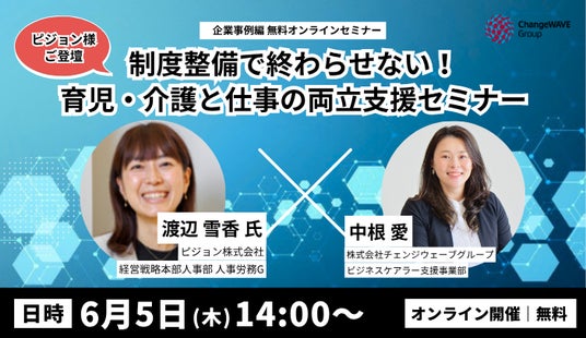 仕事と介護の両立支援を行う株式会社チェンジウェーブグループ(本社:東京都港区、https://www.changewave-g.com/ )は、2025年6月5日(木)に「実効性を高める“両立支援”施策 育児・介護と仕事の両立支援」をテーマに無料オンラインセミナーを開催いたします。