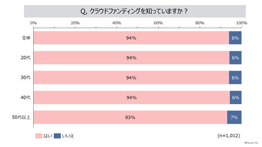 1. クラウドファンディングを知っている94%、仕組みを理解している44%
