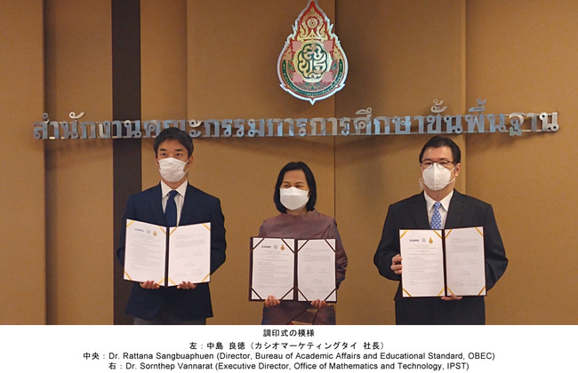 カシオ計算機は、タイでの教育事業において、グループ会社のカシオマーケティングタイが教育省基礎教育局(OBEC)・科学技術教育振興研究所(IPST)と関数電卓活用に向けた協業を行うことで合意し、2月25日に覚書を締結しましたのでご案内します。