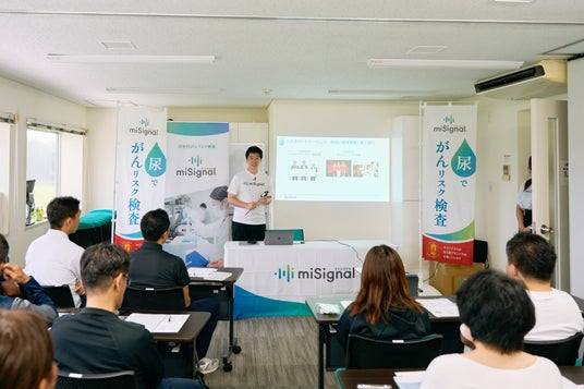 本イベントでは、Craif CTO市川裕樹が、名古屋グランパスクラブ関係者の皆様にがん啓発セミナーとして「日本のがん検診の現状」や「がんになるメカニズム」「がんの早期発見の重要性」等を解説させていただきました。また、セミナー終了後に、尿がん検査「マイシグナル(R)︎」の手軽に検査できる特徴を活かし、その場で「マイシグナル(R)︎」検査体験会を実施いたしました。