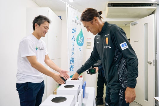 Craif株式会社(所在地:東京都文京区、CEO:小野瀬 隆一、以下Craif)は、10月16日(水)にヘルスケアパートナーシップ活動の一環として、名古屋グランパスのクラブOBを含めた関係者に向けて、がん啓発セミナーと尿がん検査「マイシグナル(R)︎」をご提供させていただき、その場で検査体験会を開催いたしました。