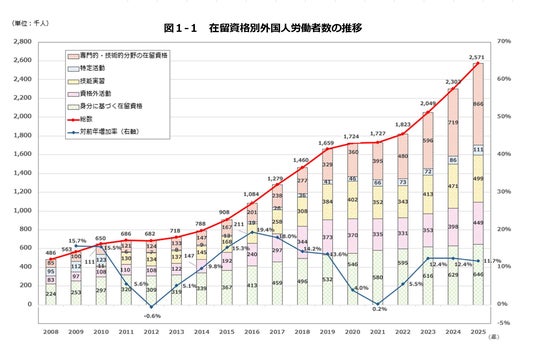 引用:厚生労働省「令和7年10月末時点の外国人雇用状況」(https://www.mhlw.go.jp/stf/newpage_68794.html)
